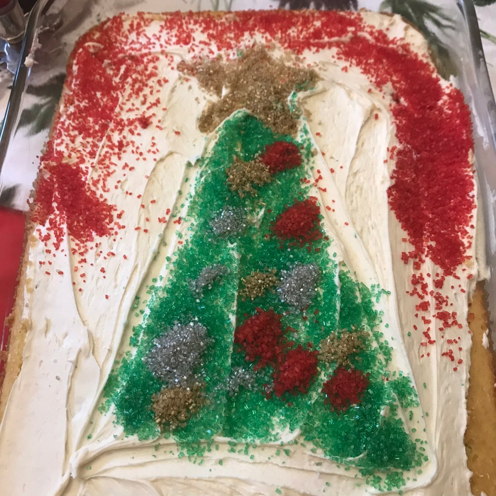 For our tea treat today, I’m serving birthday cake. We celebrated Jesus’ birthday with a cake decorated by the grandsweeties.