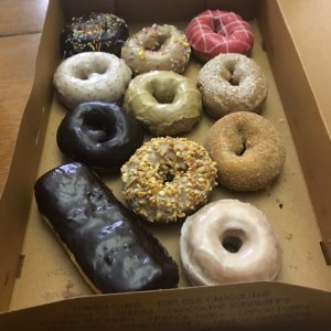 A selection of doughnuts…or donuts….all delicious flavors!